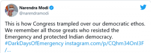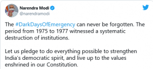 In a series of tweets on the anniversary of Emergency, the Prime Minister said.