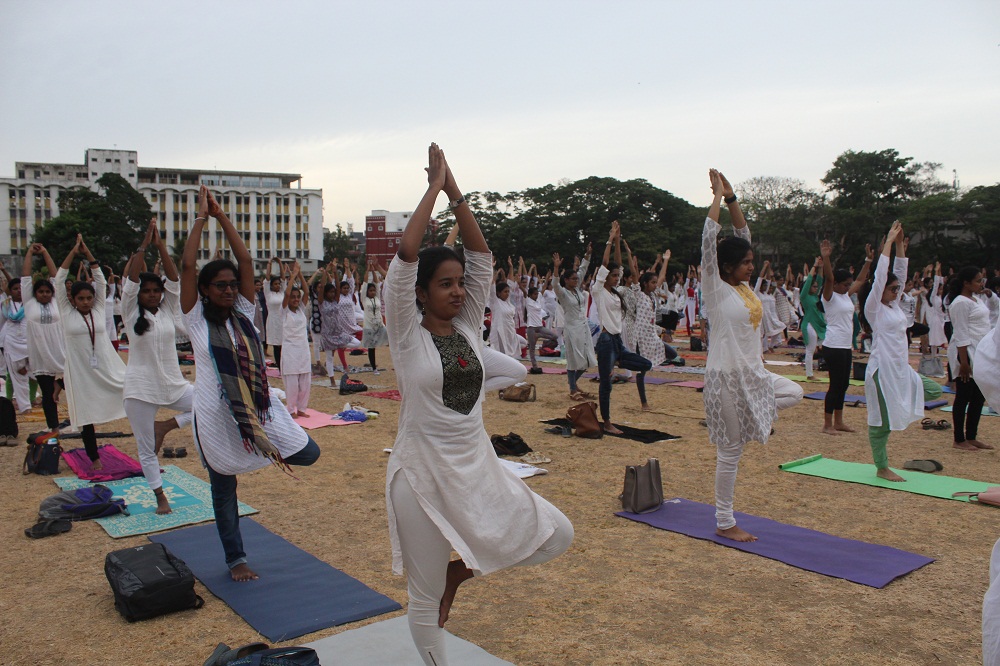 More than 1,000 students of MOP gathered to observe the International Day of Yoga