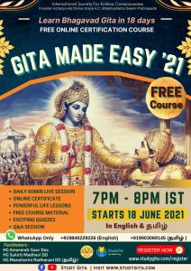 ISKCON Chennai Conducts Gita Made Easy – 18 Day Free Course on Bhagavat Gita Starts from Friday June 18th Onwards