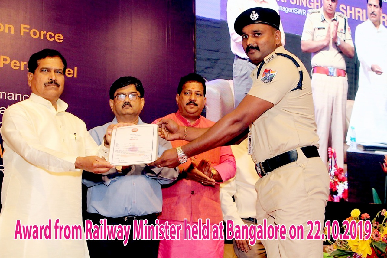 The moment of pride arrived yet again for Railway Protection Force (RPF) wing of Southern Railway. Two of the personnel received felicitations from Union Minister of State for Railways Suresh Angadi.